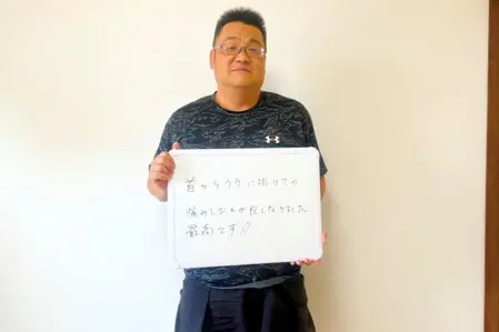 少し歩くと痛くて寝込んでいたのに、今では5000歩も歩けるようになりました。あれだけ飲んでいた睡眠薬も飲まずにぐっすり眠れるようになりました。首も痛くて回らなかったのによく動きます!